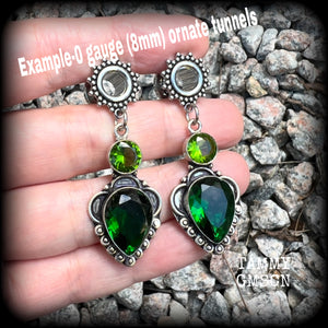 This pair has been made with 0 gauge (8mm) ornate surgical steel screw fit tunnels.